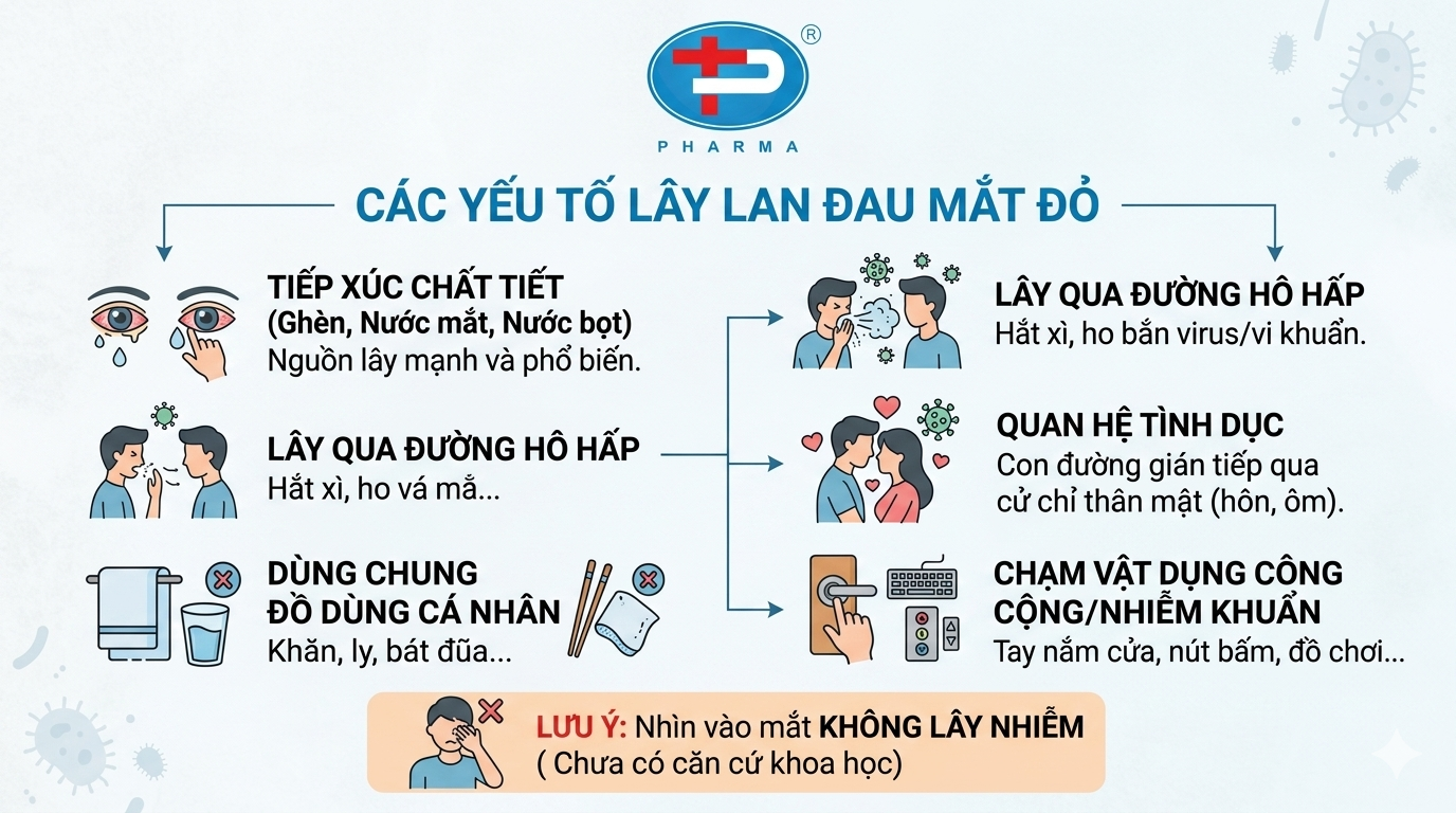 Đau mắt đỏ có lây không? Các bác sĩ đã chỉ ra những yếu tố lây mắt đỏ phải kể đến như: