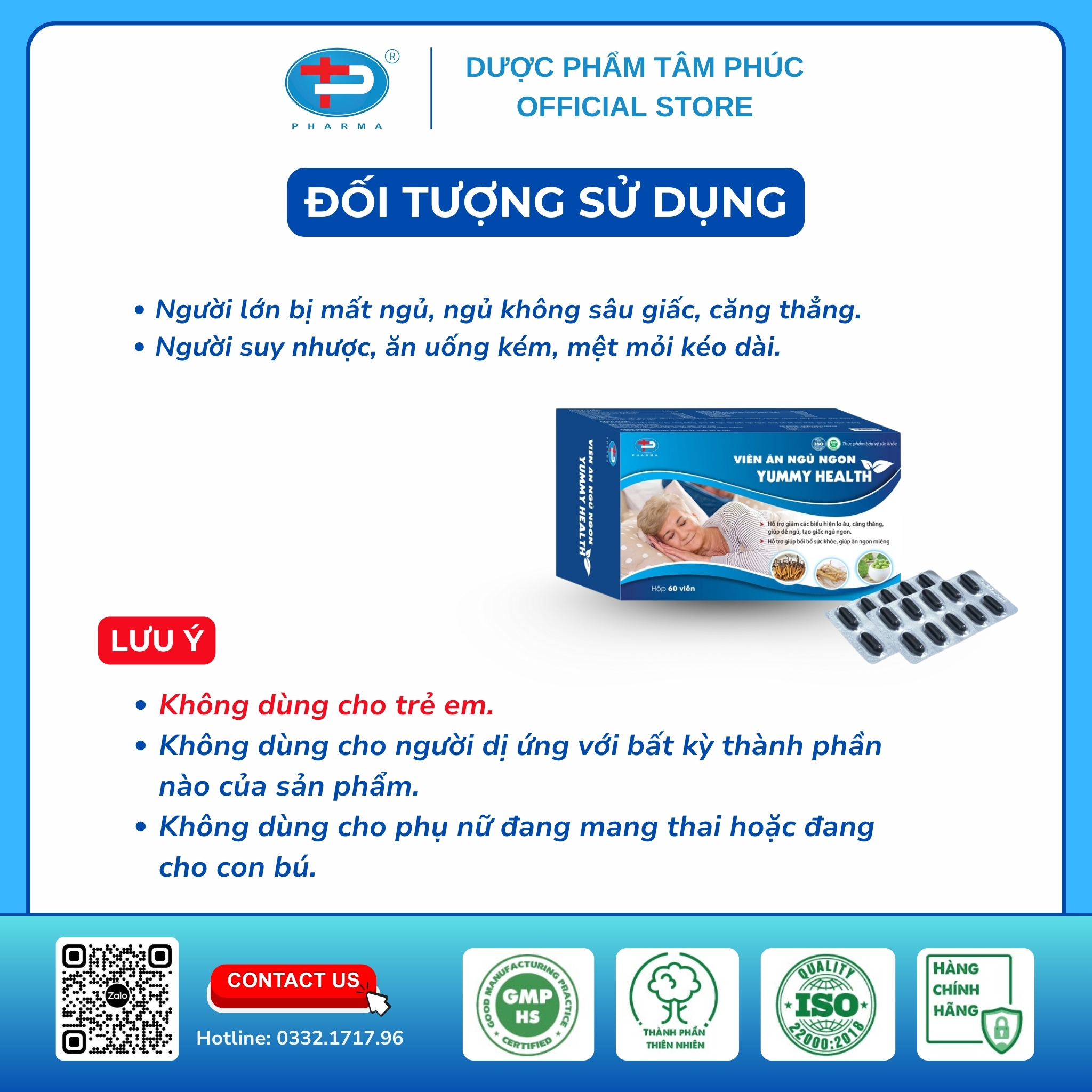 Với định hướng lấy chất lượng và sự an tâm của người dùng làm trọng tâm, Viên ăn ngủ ngon Yummy Health là minh chứng cho cam kết bền bỉ của Dược phẩm Tâm Phúc trong việc mang đến những sản phẩm chăm sóc sức khỏe toàn diện, giúp mỗi người sống khỏe hơn – ngủ ngon hơn – và tận hưởng cuộc sống trọn vẹn mỗi ngày.
