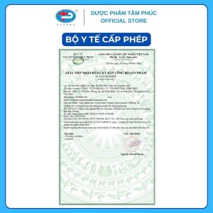 Phụ liệu: Tinh bột, Polyvinylpyrrolidone, talc, magnesium stearat, nipagin, nipasol vừa đủ 02 viên nén bao phim.