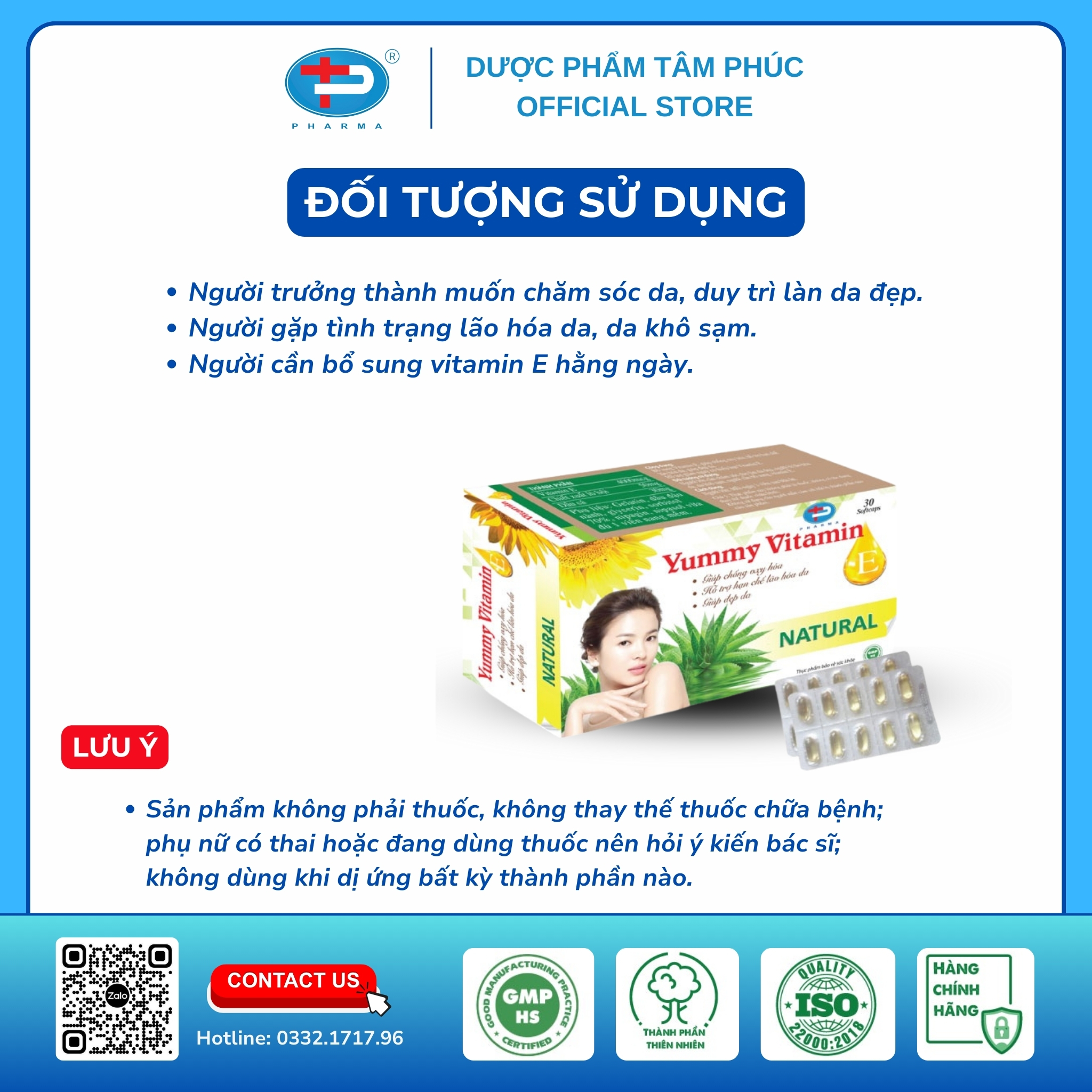 Yummy Vitamin E không chỉ là một bổ sung dinh dưỡng mà còn là một giải pháp hoàn hảo cho những người muốn duy trì sức khỏe và ngoại hình của mình. Đối với những nhóm trên, việc tích hợp Yummy Vitamin E vào chế độ dinh dưỡng hàng ngày có thể mang lại những lợi ích to lớn, giúp duy trì một lối sống khỏe mạnh và tràn đầy năng lượng.